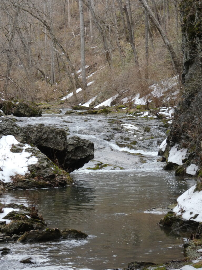 It was overcast and chilly when we were there, and Cedar Creek still had quite a bit of snow along its banks!