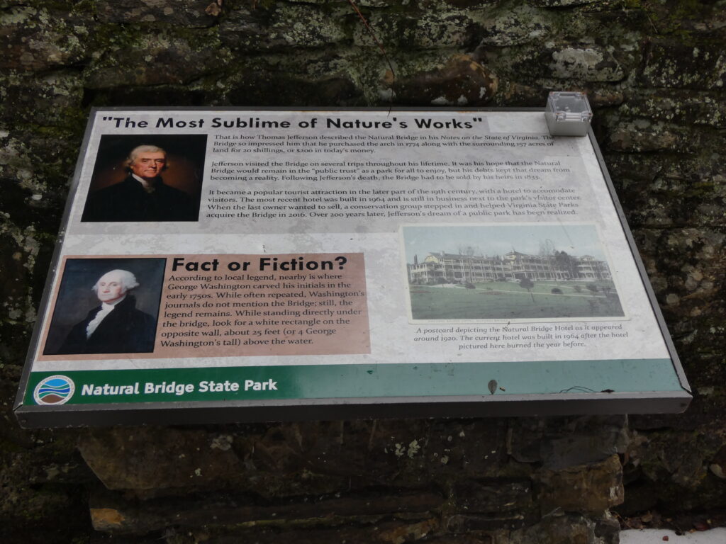Funny to think that Rt. 11–a busy N/S highway in the Shenandoah Valley–goes right over the top of Natural Bridge!