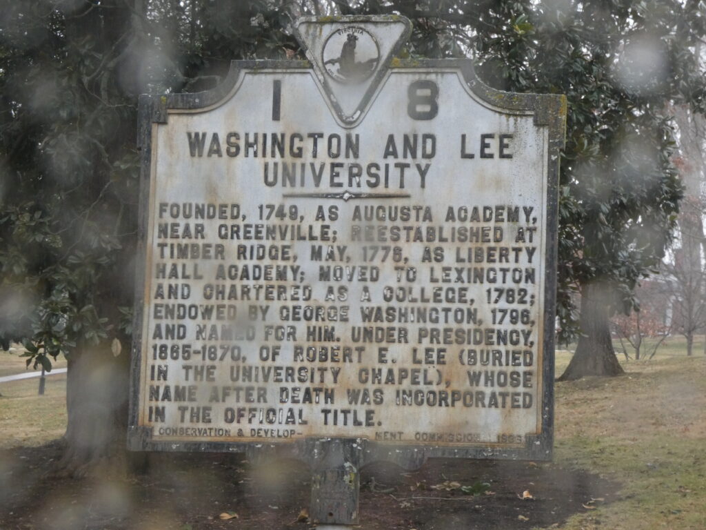 It was raining the next morning as we left Lexington, but we took a few minutes to drive through the VMI and Washington and Lee University campuses. I was surprised by how close W&L is to VMI–they’re literally nextdoor neighbors!