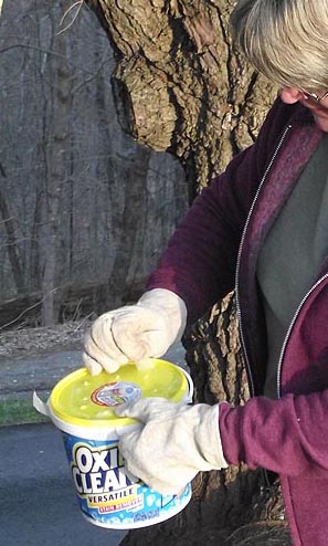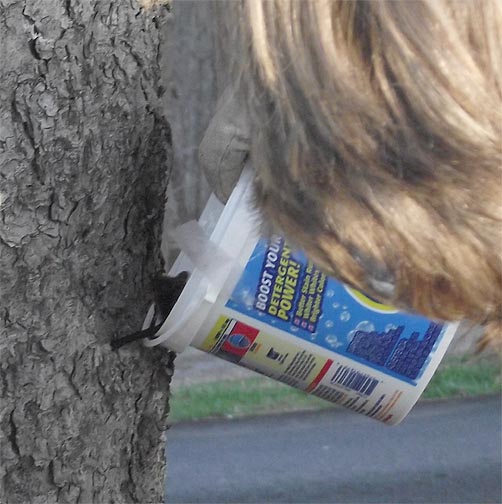 Donning gloves, I gingerly opened the container (while a friend shot these pictures), tilted the bucket towards the tree and watched him climb out.
