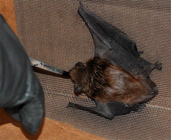 As I say on each of the "bat pages" on my website, I was caring for this Big Brown bat with the support of a licensed wildlife rehabilitator. As a safety-conscious rescuer and temporary caregiver, I can help keep a young or injured wild animal warm and hydrated, but turning it over to a wildlife specialist gives it the best possible chance of surviving and someday returning to its natural habitat, where it belongs.