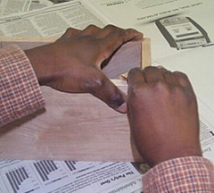 They were amazed at how quickly they could get a smooth finish. Encouraged by this, they began sanding the sides and "seams" of their boxes, with equally good results.