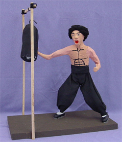The Sculpey was painted with acrylic paint, clothing was made from papier-mache or fabric, props were created, accessories were added, and all manner of creative problem solving took place for this project. Students are always required to make a sculpture that is so well balanced that it can stand on its own (feet may be glued to a base) OR they must create props or "environments" that will support their sculpture in a realistic pose.