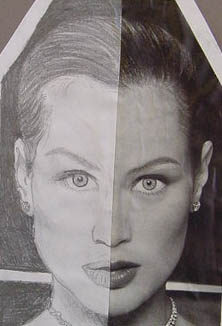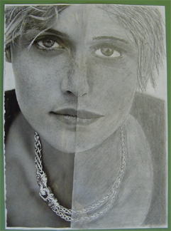 Art I students who finish their self portraits before the deadline are challenged to complete a portrait from a magazine photo. They are given one half of a photograph and draw what they think the other half looks like.