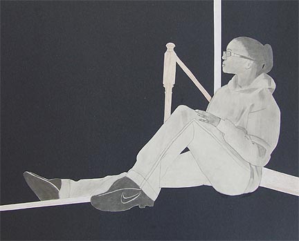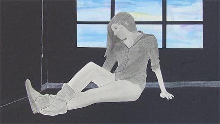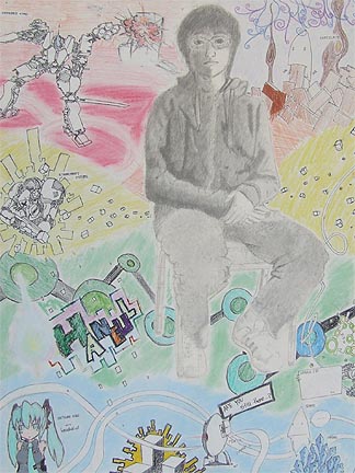 Art 2 students grid and enlarge a photograph of themselves to produce a self-portrait figure drawing in pencil. In addition to proper proportion, emphasis is on creating a good likeness and achieving effective contrast.