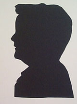 When they had a good contour, they cut out the enlarged image, and placed it FACE DOWN on silhouette paper. They traced around this using a white pencil and cut it out. Then flipping the image back over to the "right" side, it was mounted on white matboard.